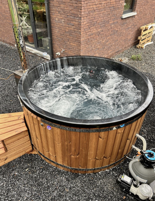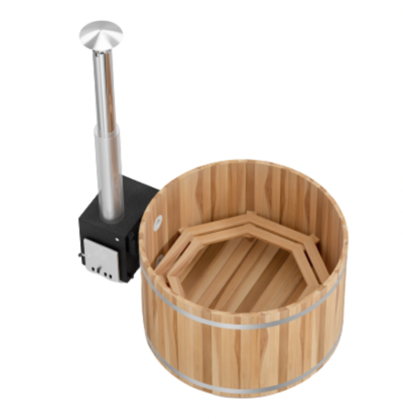 Le bain est livré avec son poêle, sa couverture isolante et son escalier trois marches.