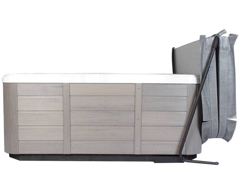 Pour utiliser le lève couverture, vous pouvez saisir les poignées ou les sangles de la couverture et la soulever légèrement pour la dégager du spa. Ensuite, vous pouvez activer le mécanisme de levage du lève couverture, ce qui soulèvera la couverture et la maintiendra en position verticale, permettant un accès facile au spa.