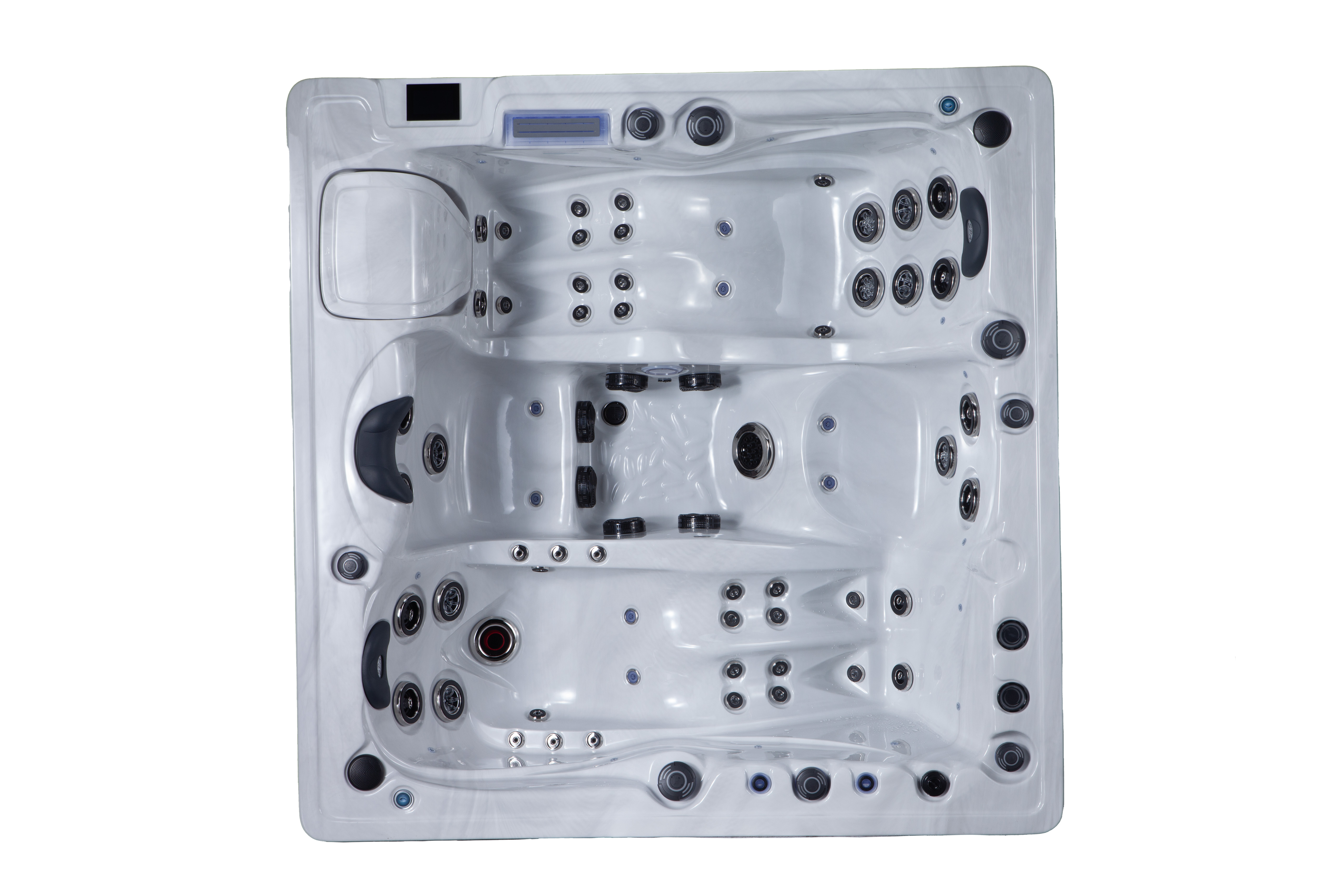 Configuration : 2 assises + 2 allongées Nombre de jets : 66 jets dont 8 jets d’air Dimensions : 210 cm x 210 cm x 94 cm