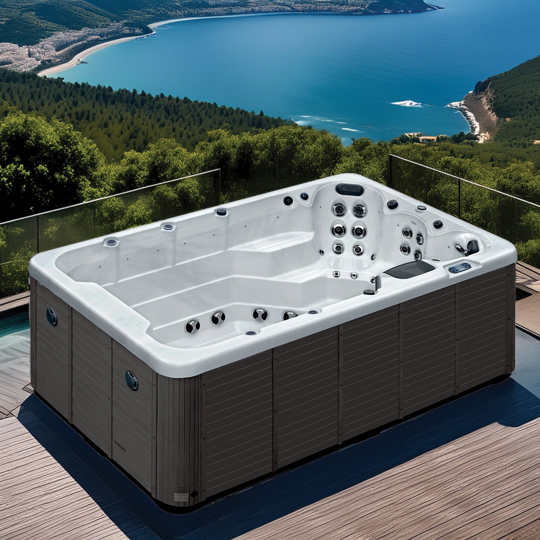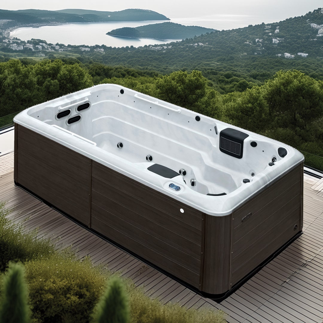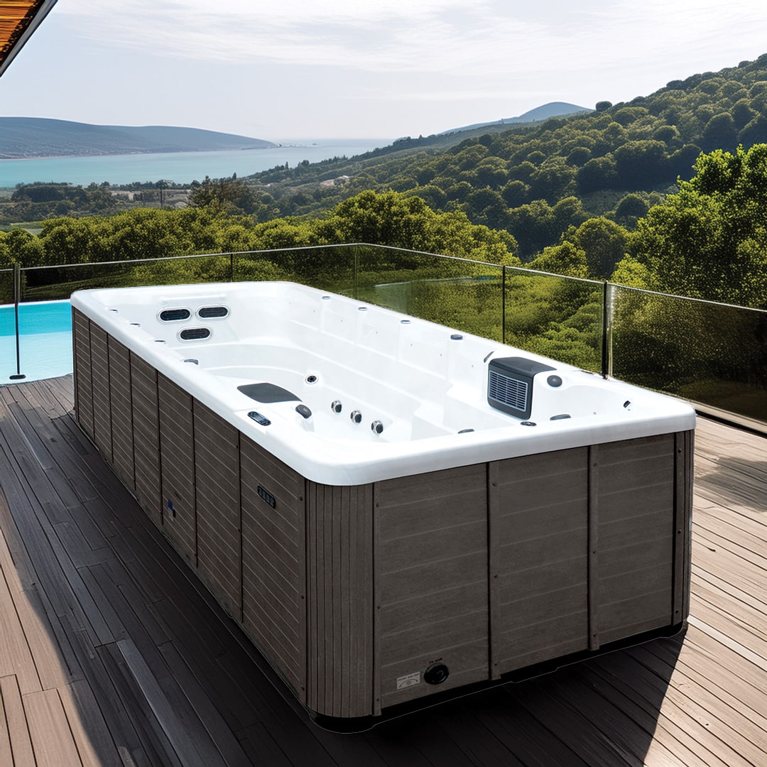 Profitez du meilleur des deux mondes avec nos spas de nage : un espace pour la relaxation et un couloir de nage pour le sport, utilisables toute l’année.